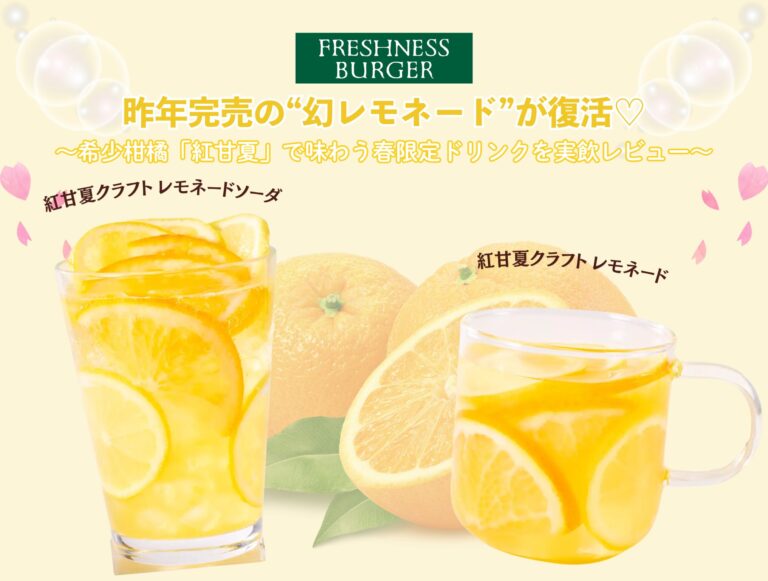 グルメ 【フレッシュネスバーガー新作】昨年完売の“幻レモネード”が復活♡希少柑橘「紅甘夏」で味わう春限定ドリンクを実飲レビュー!
