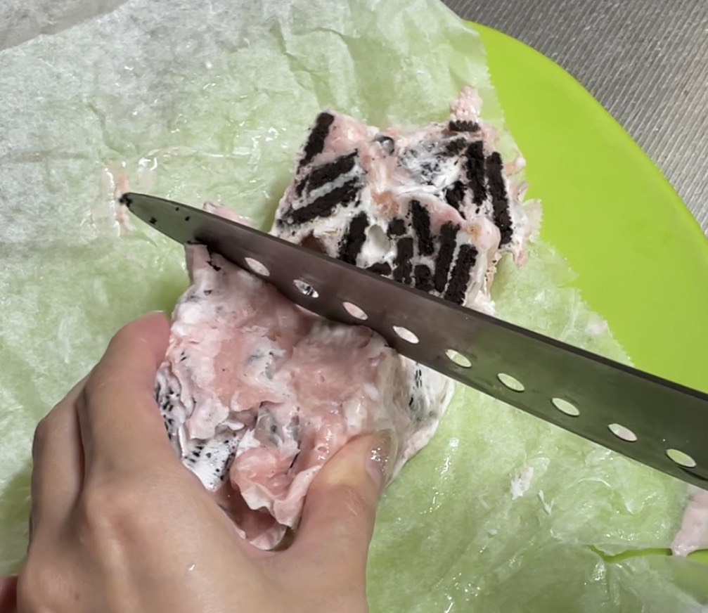 包丁で切り分けると、断面がとっても可愛くて大満足の仕上がりに💕。