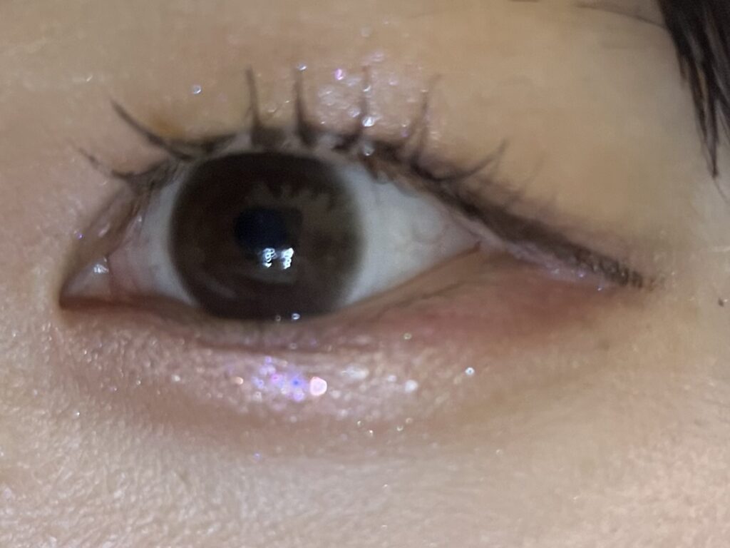 アイラインは垂らし、涙袋との間をしっかり粘膜カラーで埋め🎀。