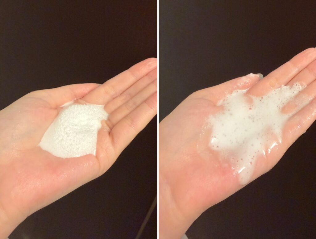 なんと、パウダーを水に混ぜると、炭酸が発生して発泡するんです!