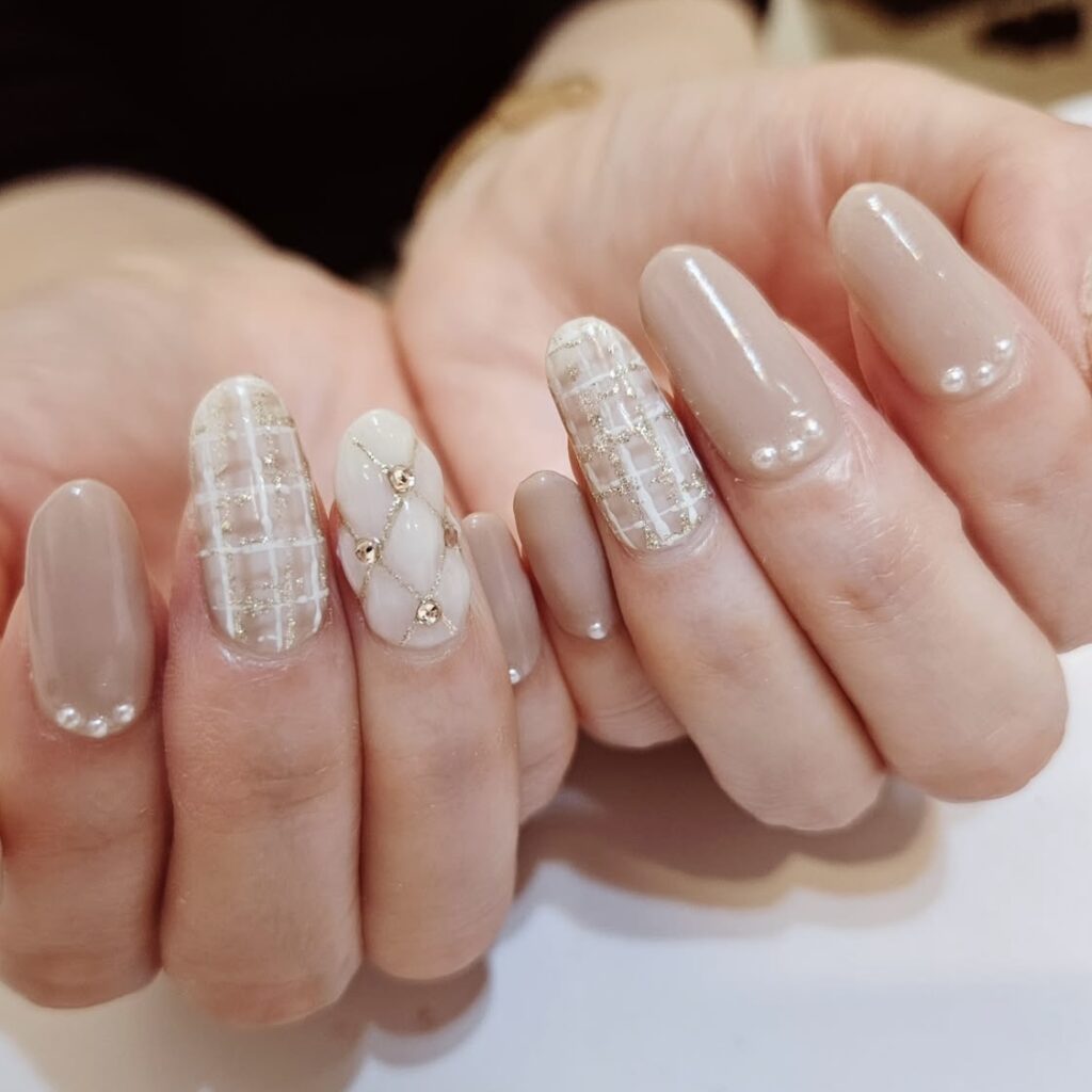 【ツイードネイル×ベージュ】オフィスにも最適♡ナチュラル上品な万能カラー
