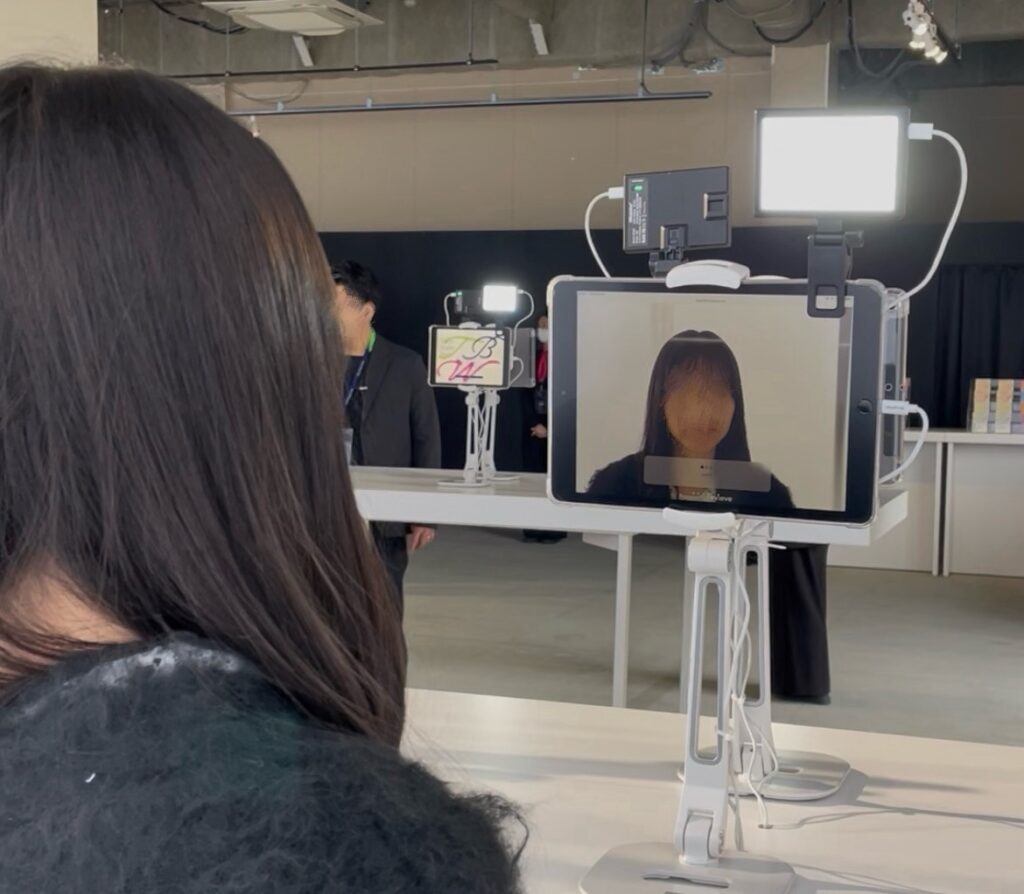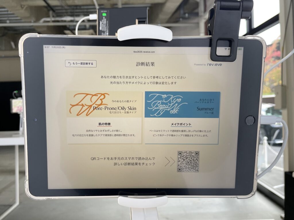 ここでは、テーブルに設置されたタブレットで肌質・パーソナルカラー診断を体験することができるよ📝。