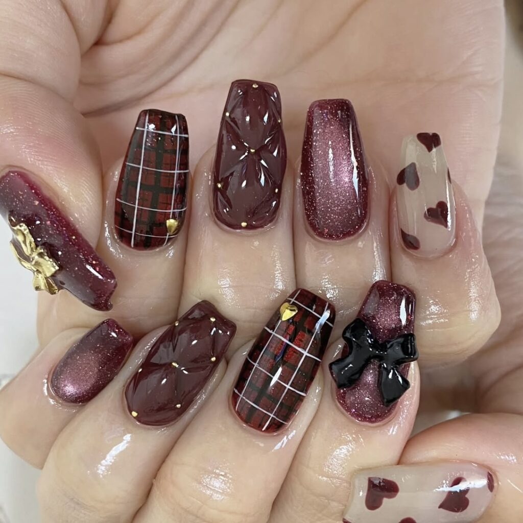 チェック柄を取り入れたクリスマスネイルは、一気に冬らしい大人のクリスマス感がアップ。⛄️✨