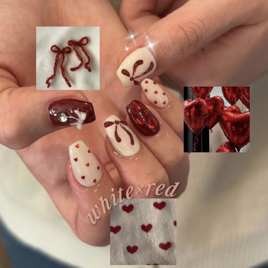 赤ネイルと合わせることで、甘さ控えめな上品クリスマスネイルが完成します。✨