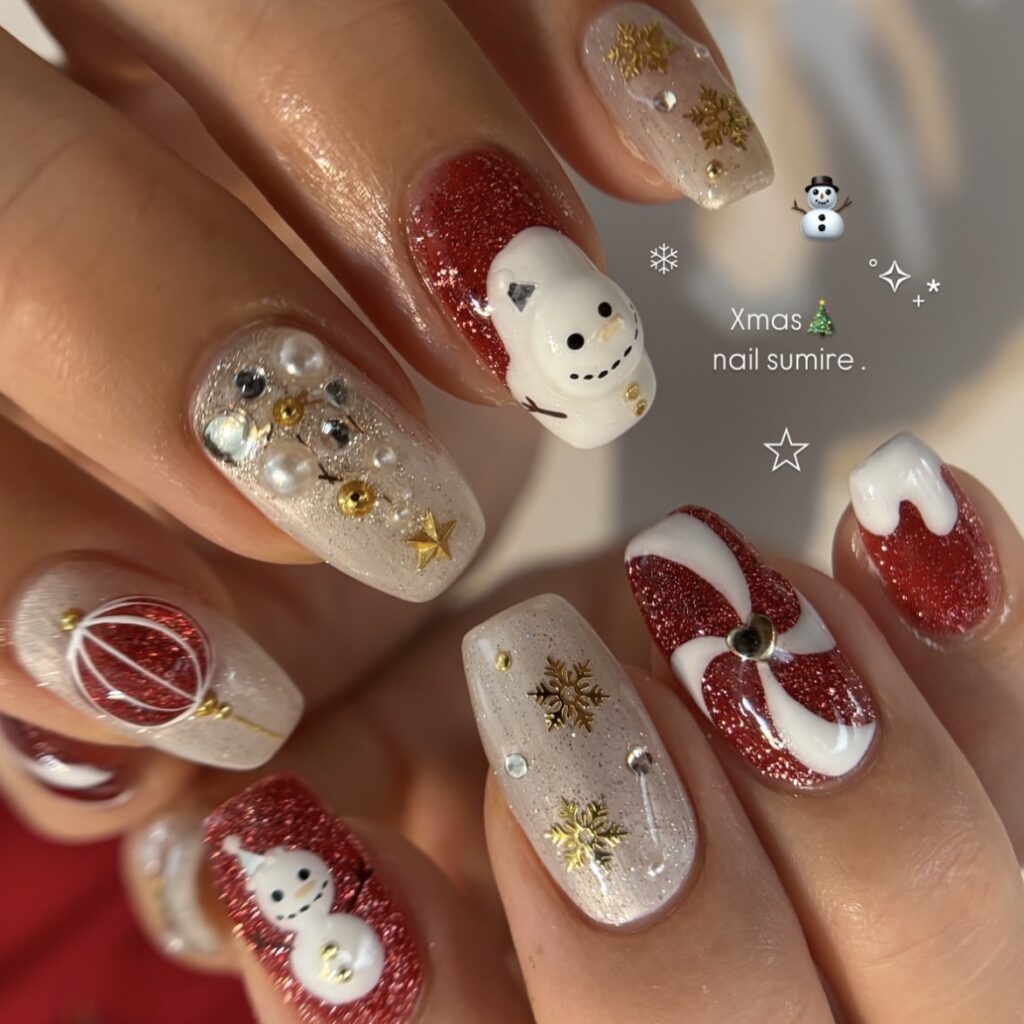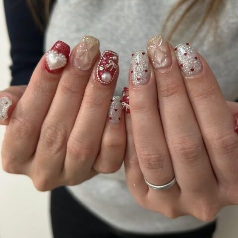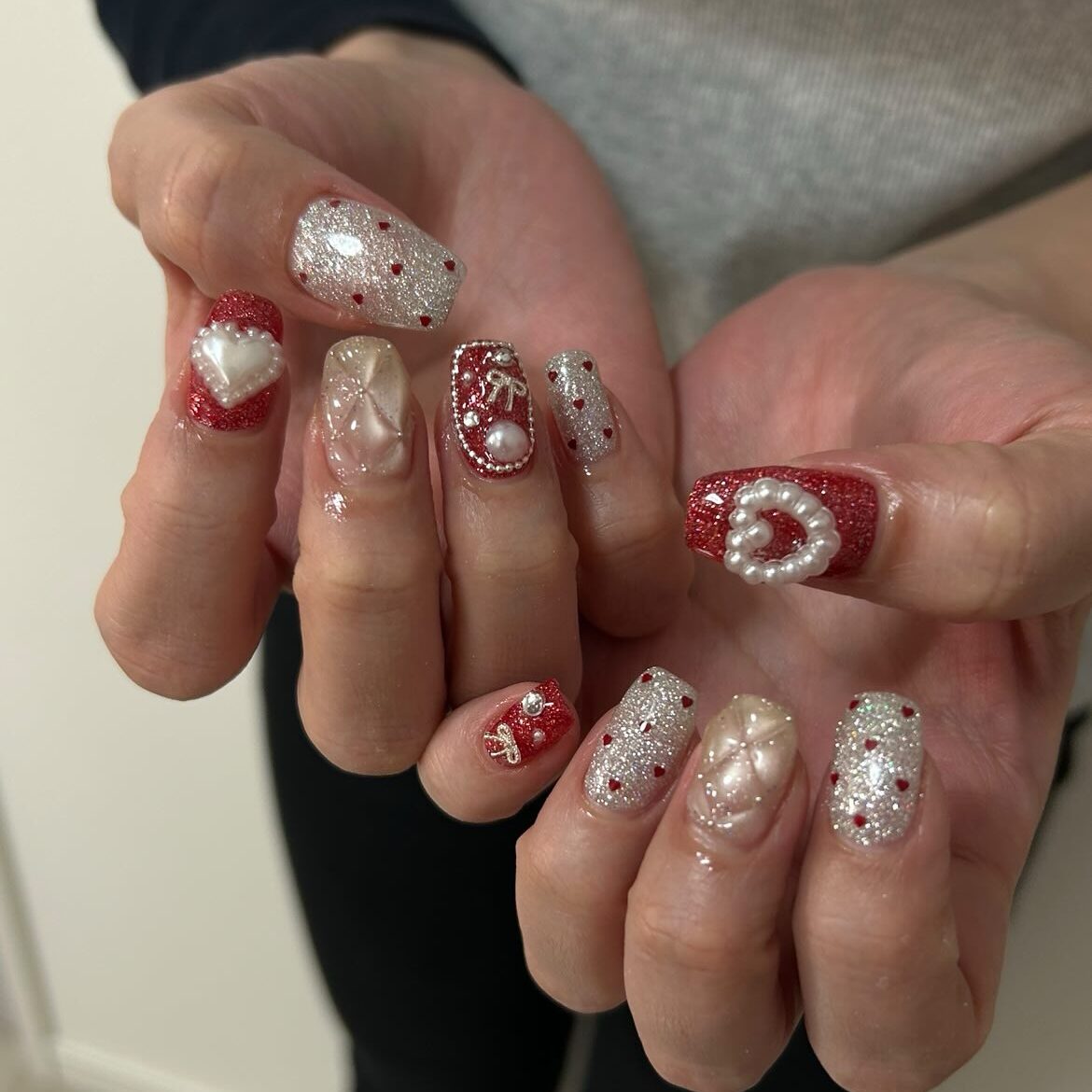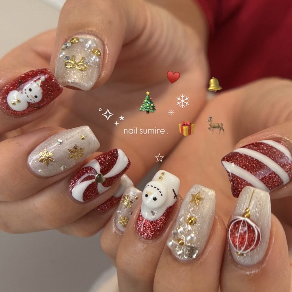 ラメやストーンを使ったキラキラネイルは、クリスマスシーズンに欠かせないデザイン。🎅🏻🤍