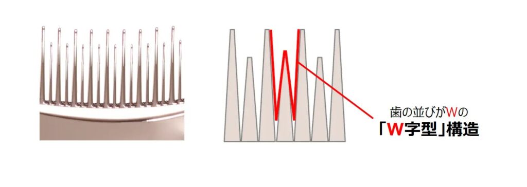 ●2種の長さの歯を交互に配置し、毛束をキャッチ