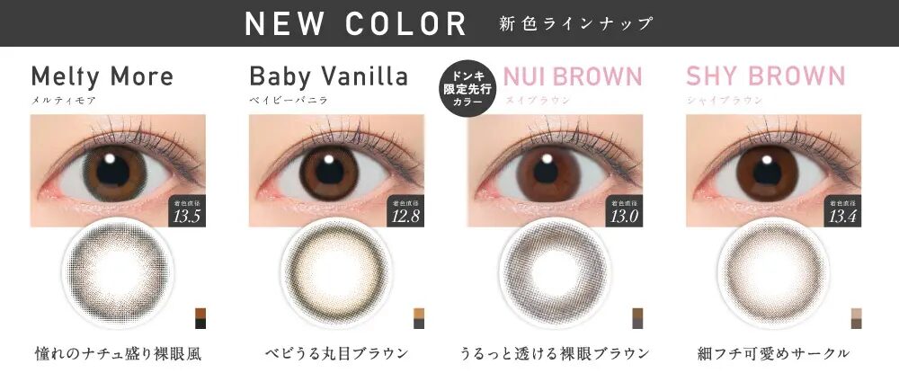 さらに、ドン・キホーテ限定先行カラーとして、1day新色の中でも特に毎日使いにぴったりな“裸眼風ブラウン”を、マンスリーでいち早くお届け♡