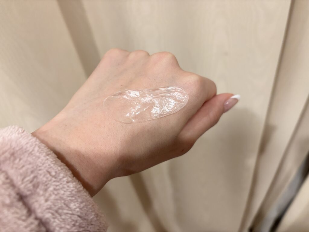 水のようにさらさらしたテクスチャーで、肌のマッサージがしやすいのが特長。