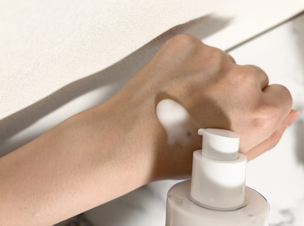 上部をプッシュして出てくるタイプのローションになっています🍃。