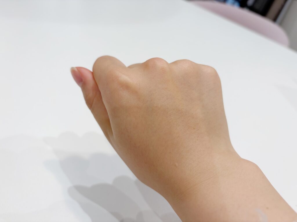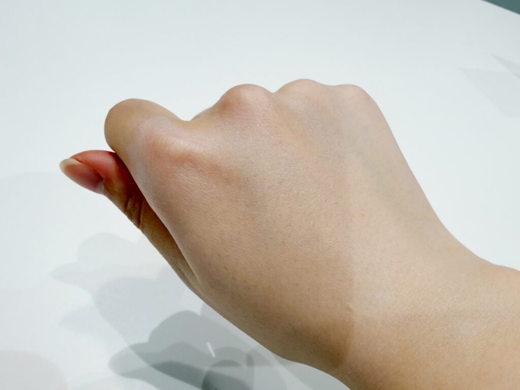 軽く肌の上にファンデを置いて滑らせるように伸ばすと、毛穴のキメが整って、パウダーなしでもサラッとした肌を作れるよ♪✨