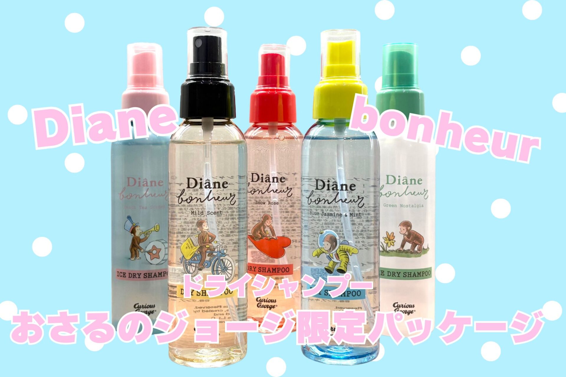 今回は、Diane Bonheur(ダイアンボヌール)のドライシャンプー おさるのジョージコラボをレビューしました!