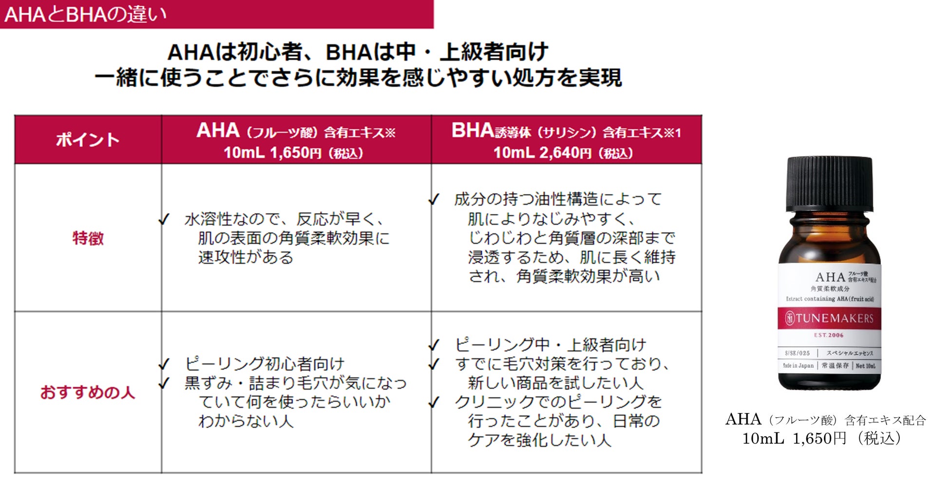 チューンメーカーズでも人気の商品「AHA(フルーツ酸)含有エキス※」と、