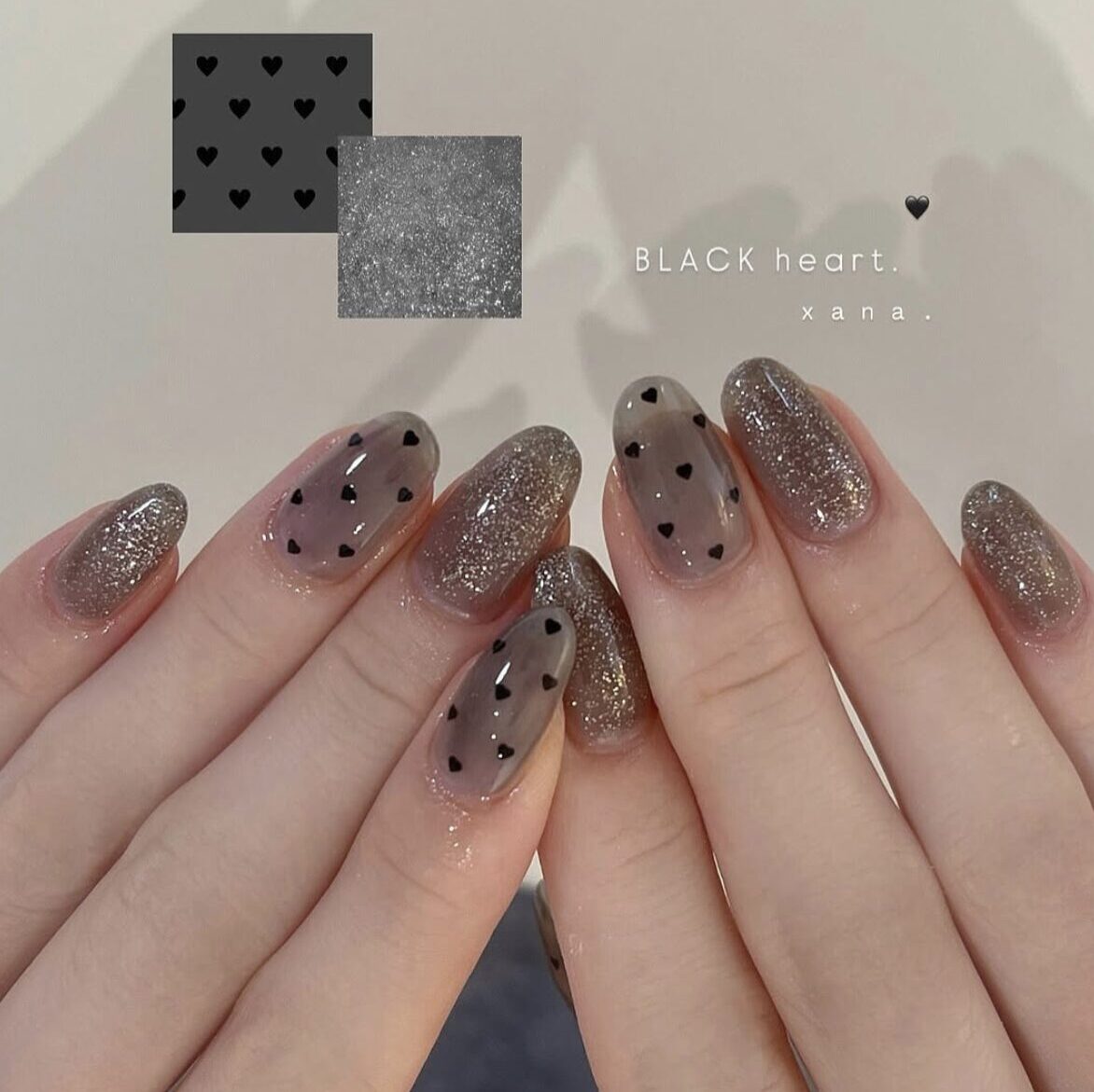 【ドットネイル×ブラック】⑫グレーラメベースでクールにきらめく