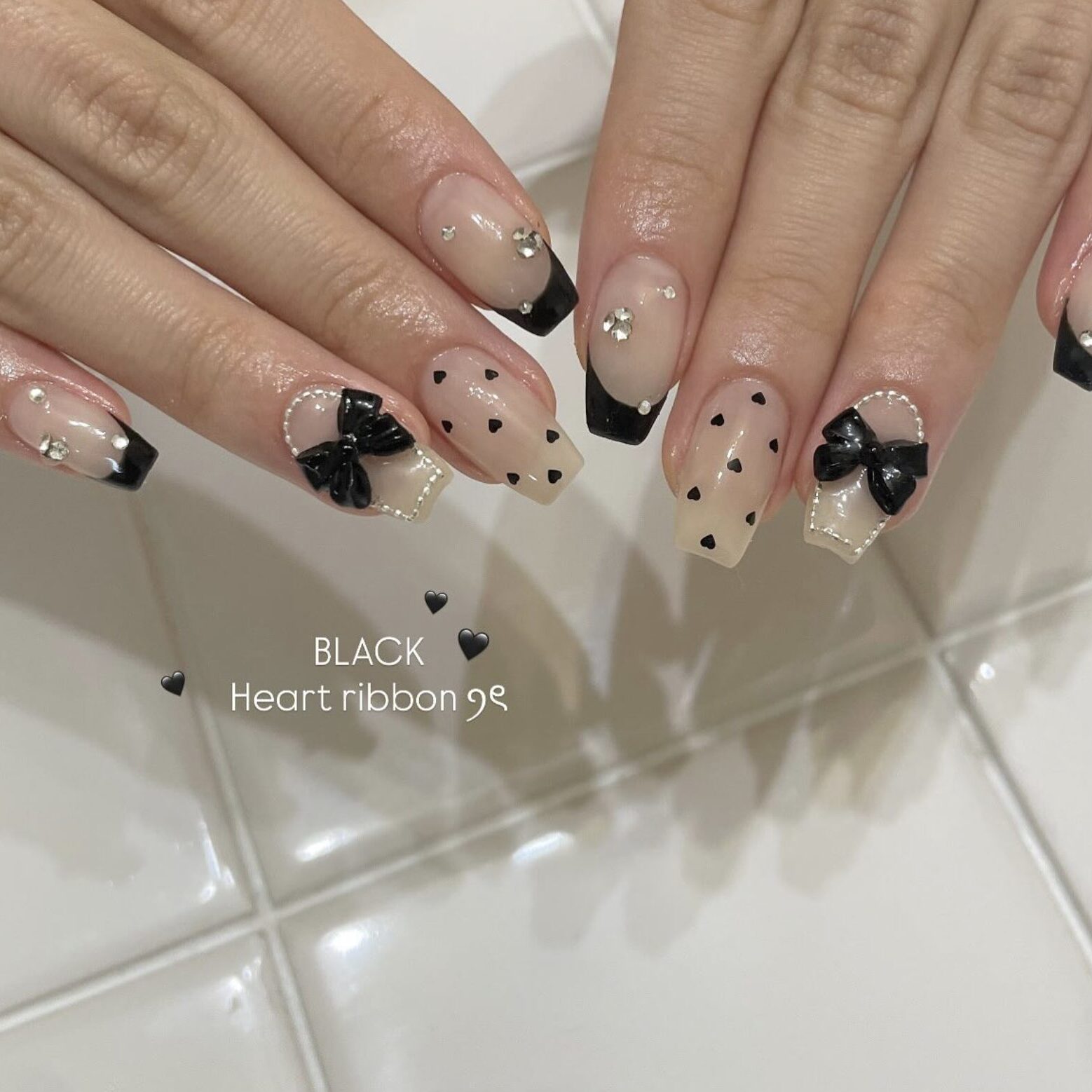 ブラックのリボンとドットの相性が抜群。✨🎀