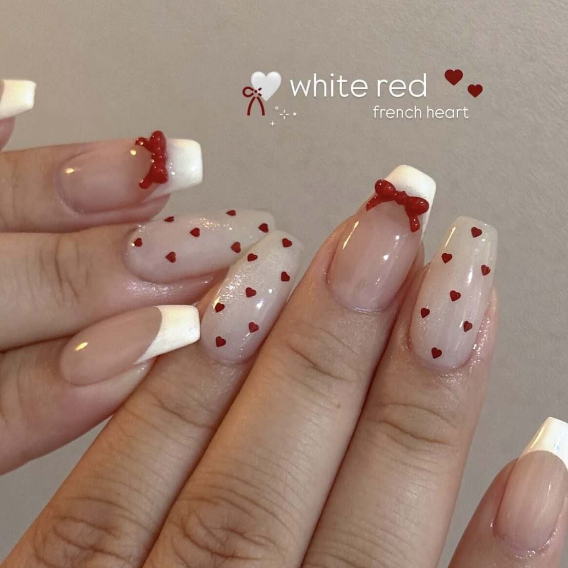 - 11 【ドットネイル×ホワイトレッド】⑪赤いハートが主役の甘かわネイル