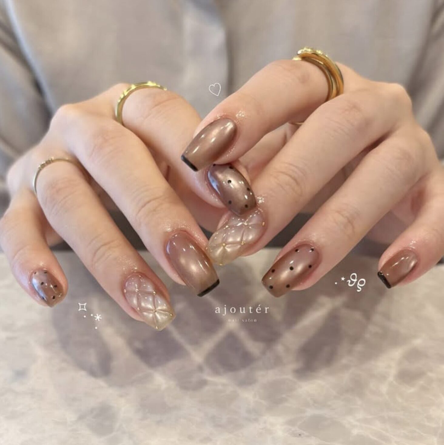 【ドットネイル×マグネットネイル】⑩秋にぴったりの上品ブラウンネイル