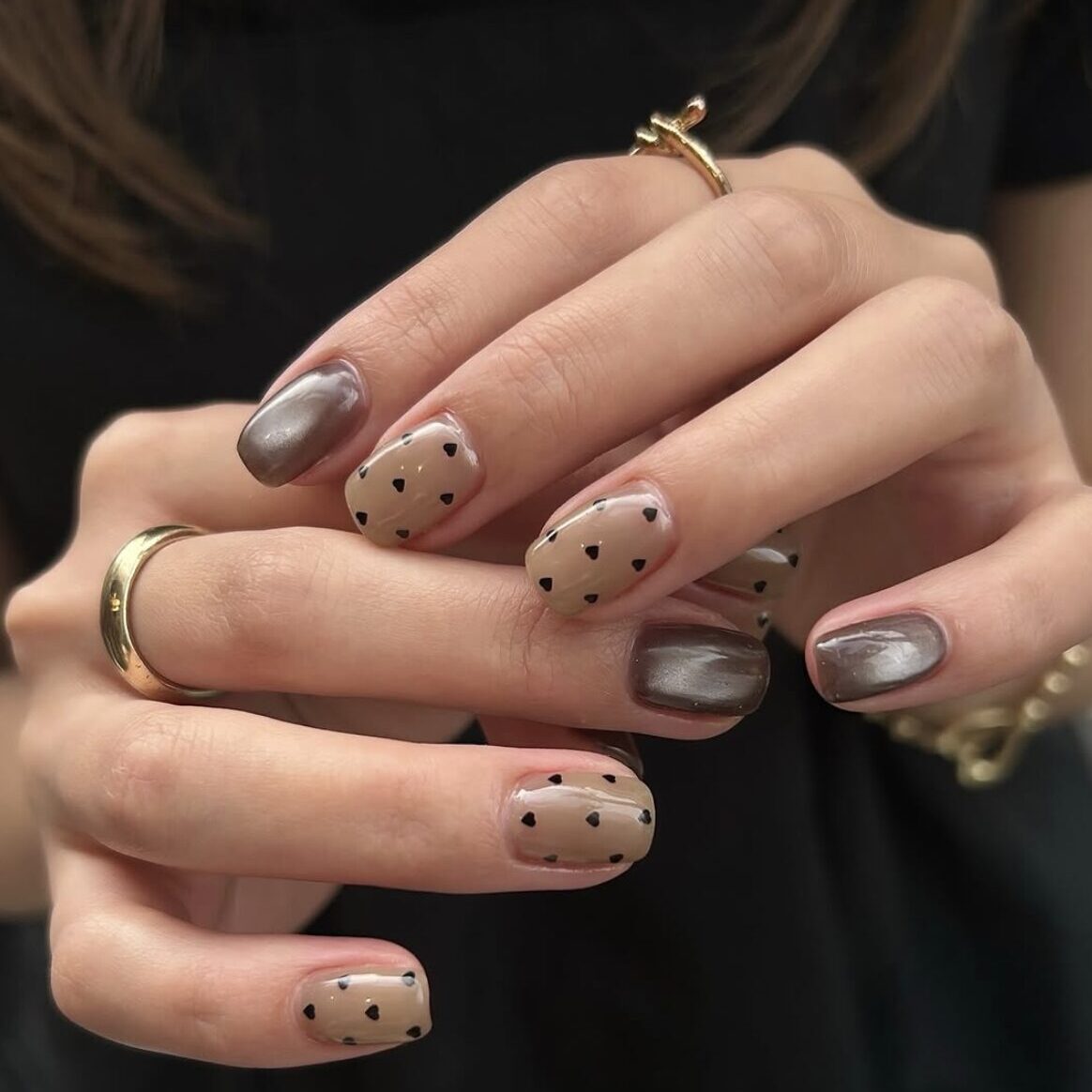 ほんのり光るマグネットネイルに、ドットをプラス。🤎