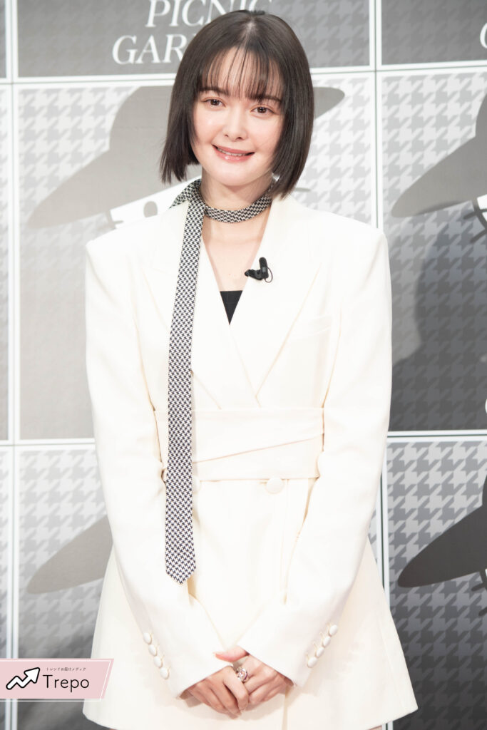 シンプルで大人っぽい白のセットアップに、千鳥柄のタイがアクセントの衣装で登場した玉城ティナさん。🤍