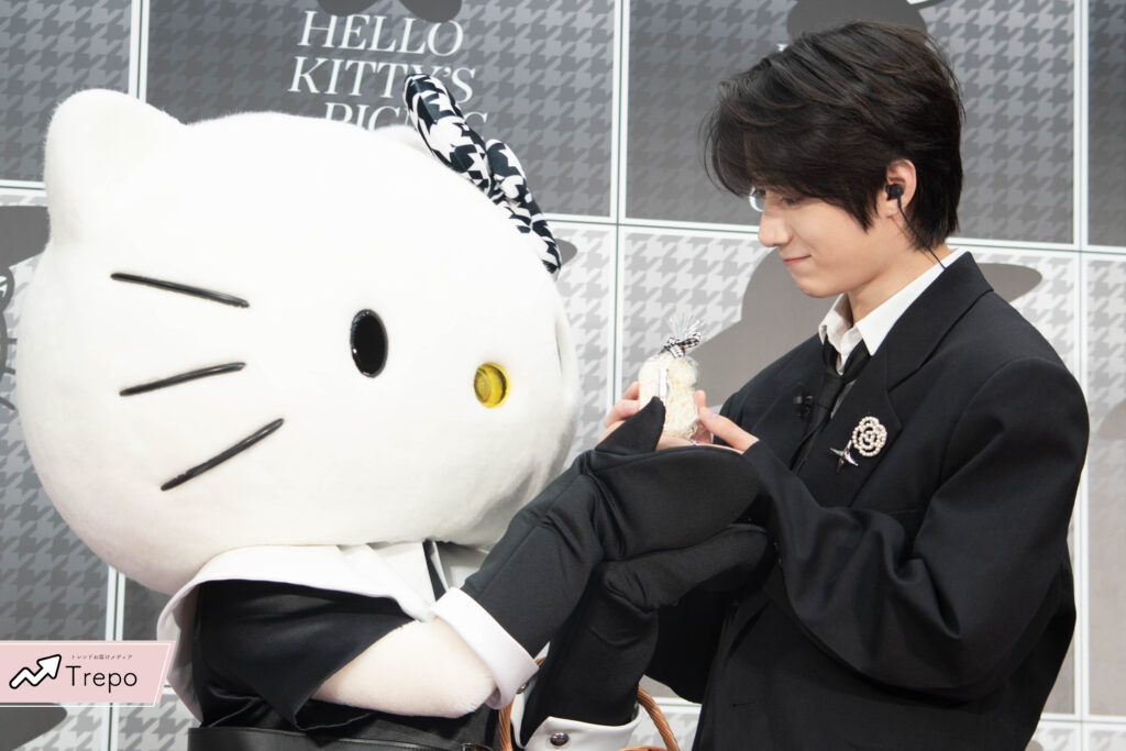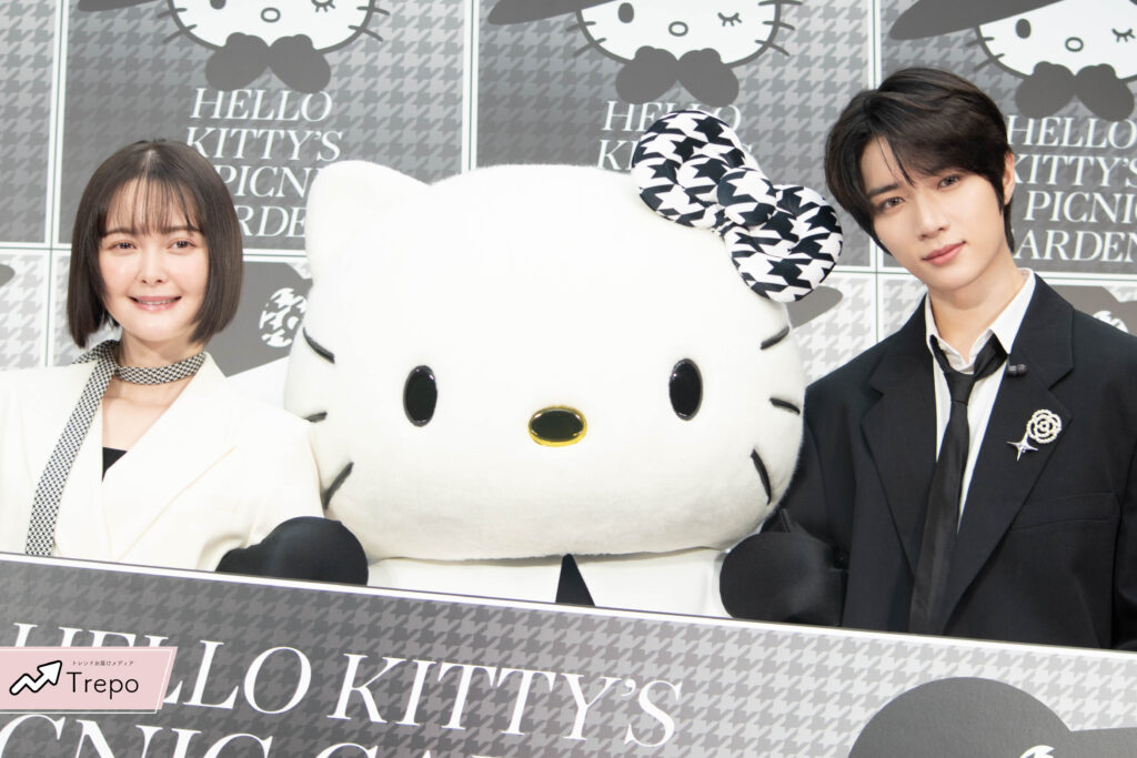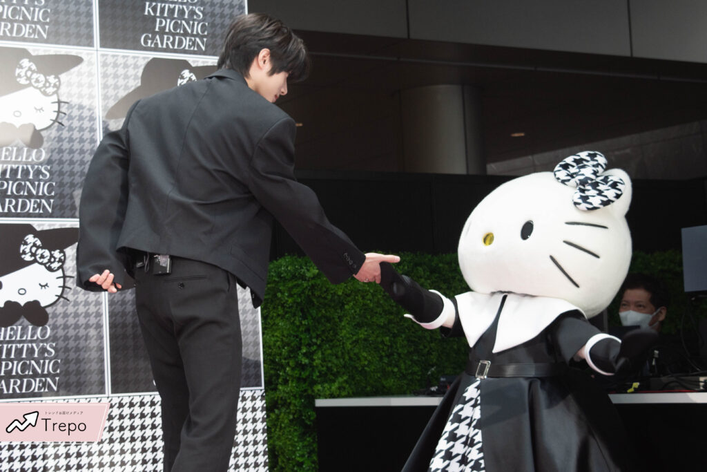 サンリオが開催するイベント「HELLO KITTY’S PICNIC GARDEN」のオープニングセレモニーに、グローバルボーイズグループ・TXT(TOMORROW X TOGETHER)のボムギュさんと、女優の玉城ティナさんが登場!✨