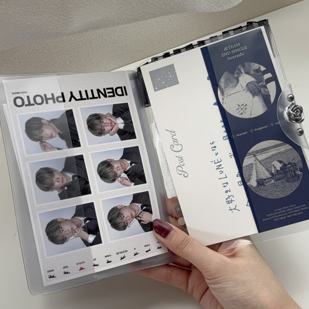 4枚目・5枚目はブックカバーのようなマチがあるので、ポストカードなどの大きめの紙類を入れたよ📜