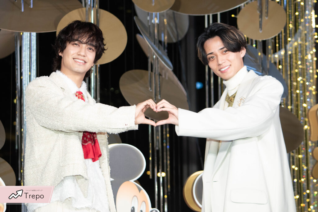イルミネーションの雰囲気に合わせて白で統一したコーデで登場した、King & Princeの永瀬廉さんと髙橋海人さん✨。