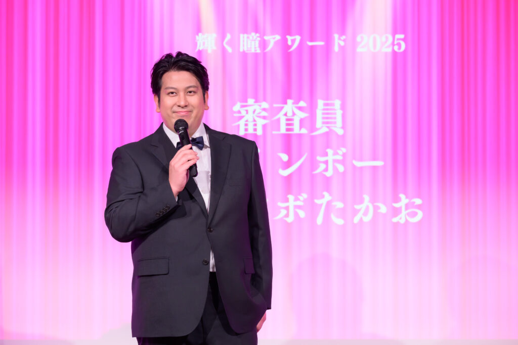 「輝く瞳アワード2025」において、審査員を務める、スーツ姿のジャンボたかおさんが登場!