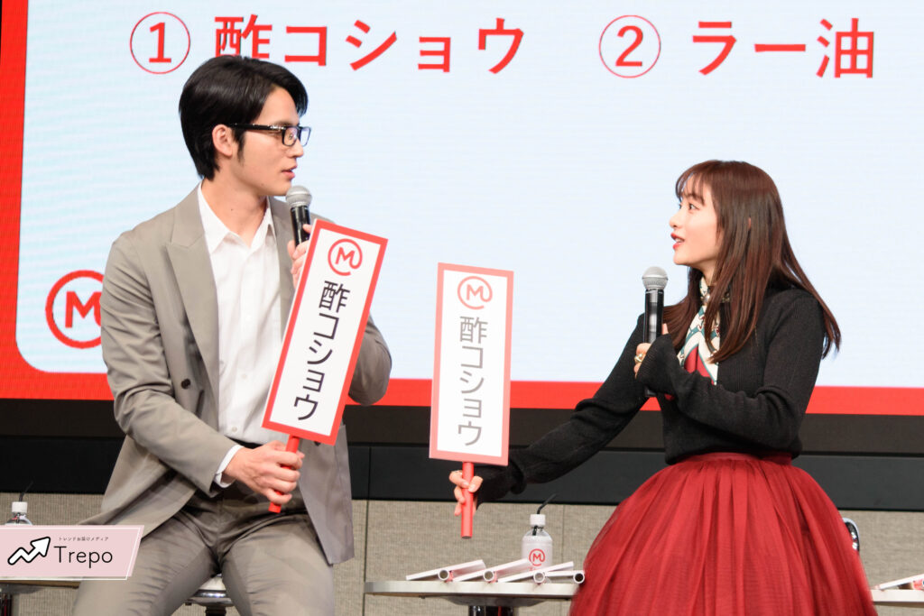 「その料理にトッピングするなら…」という問いに対し、トッピングが書かれた5つの札から1つ選んで、3人全員のトッピングが揃うのかというチャレンジに挑戦!❤
