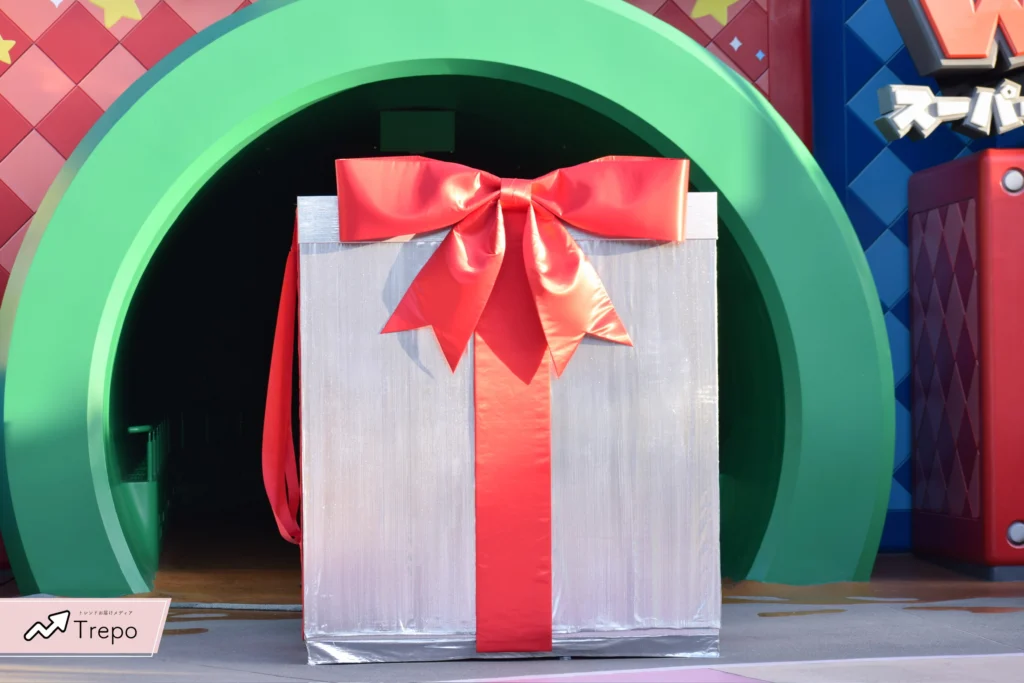会場には、スーパー・ニンテンドー・ワールド5周年を記念した大きなアニバーサリーボックスが登場!🎁✨