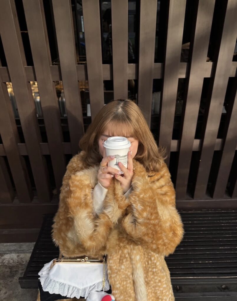 バンビコアコーデはホットドリンクを片手に、ゆっくりカフェタイムを楽しむのにぴったりだよ☕。