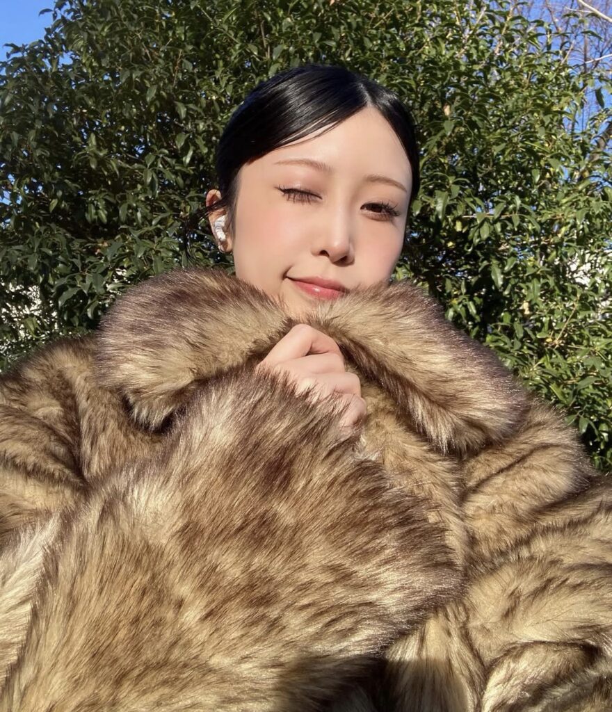 たっぷりとしたバンビ柄のロングファーコートは、温もりに溢れていてとっても可愛い♡