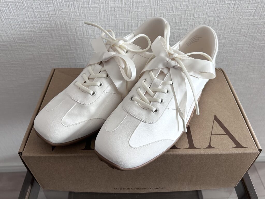 スニーカーなのにバレエシューズみたいに上品で、どんなコーデにも合わせやすいのが嬉しいです♡