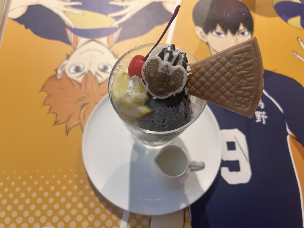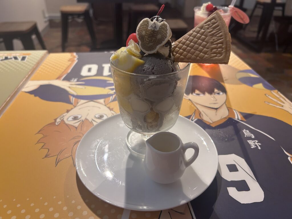 アイスやフルーツ、ソースで梟谷学園高校カラーを表現した豪華サンデー。