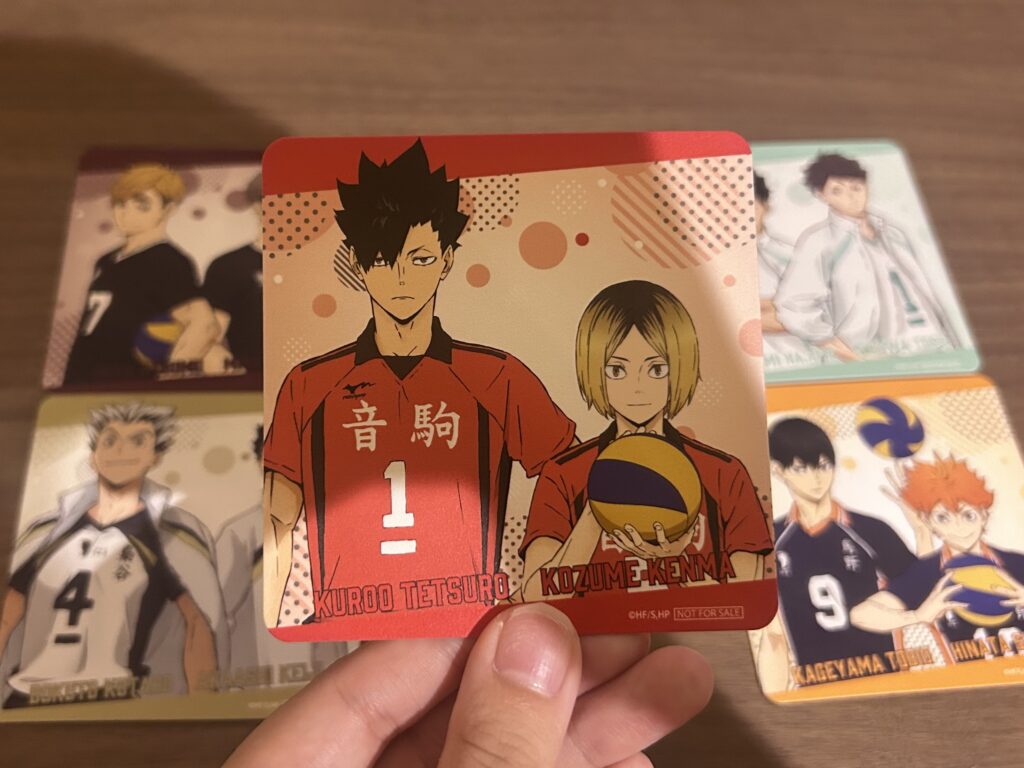 「ハイキュー!!~勝利への道筋カフェ~」でドリンクを注文すると、なんとオリジナルデザインのコースター(全6種)が必ず1枚ついてきます。
