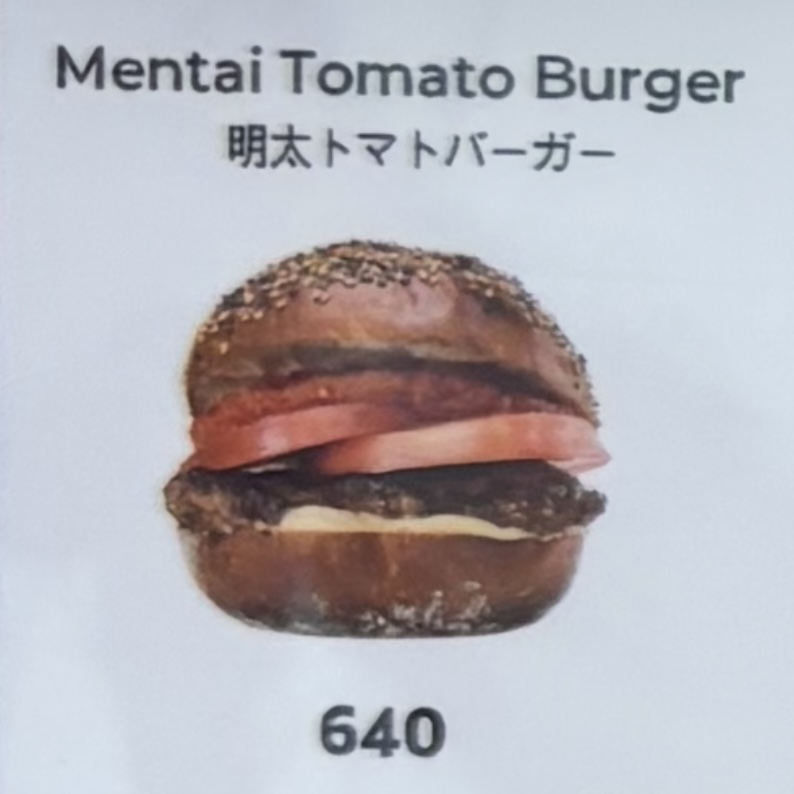 牛パテ×自家製マヨ×トマトスライスの上に、明太子×トマトソースの特製ソースをたっぷり。