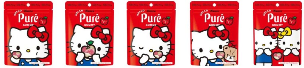 ・ハローキティとコラボレーションしたジューシーで甘ずっぱいりんご味のピュレグミ