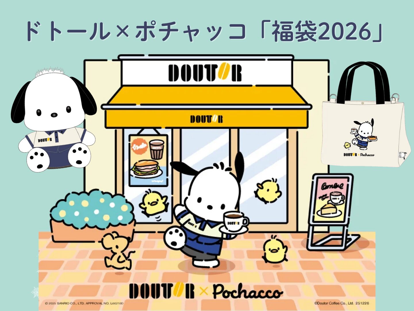 そんな中、今年もドトールからサンリオの人気キャラクター・ポチャッコとコラボした「福袋2026」が登場するよ☕️💐