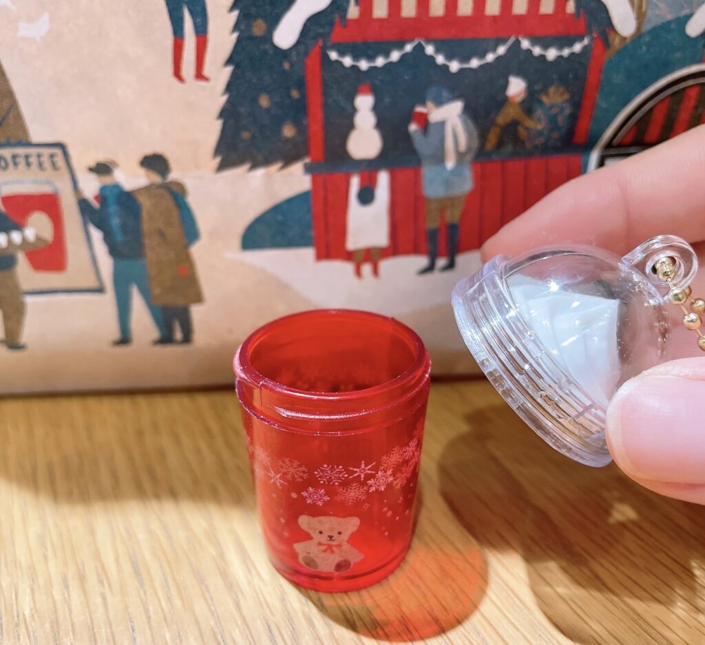 限定ドリンク一杯と、+770円(税込)で、「ホイップミニカップキーチェーン(ホリデー)」をゲットできるよ!