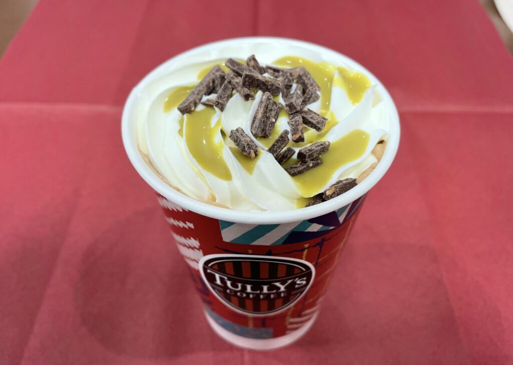 「タリーズドバイチョコレートラテ」は、ピスタチオの風味が広がる、ドバイチョコレートをイメージしたドリンク!🍫