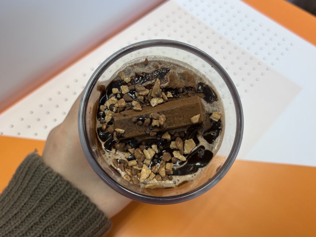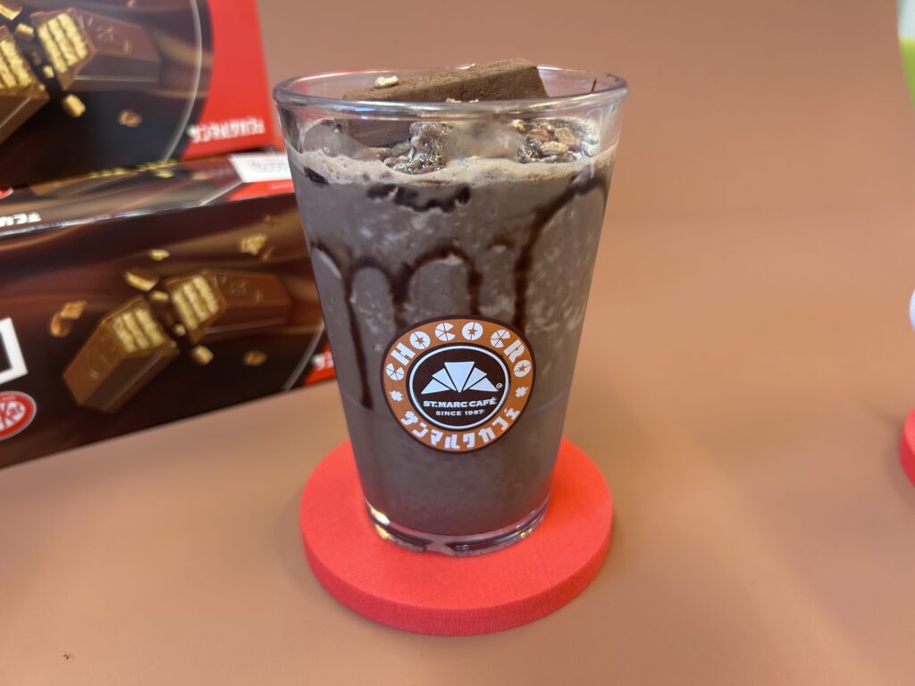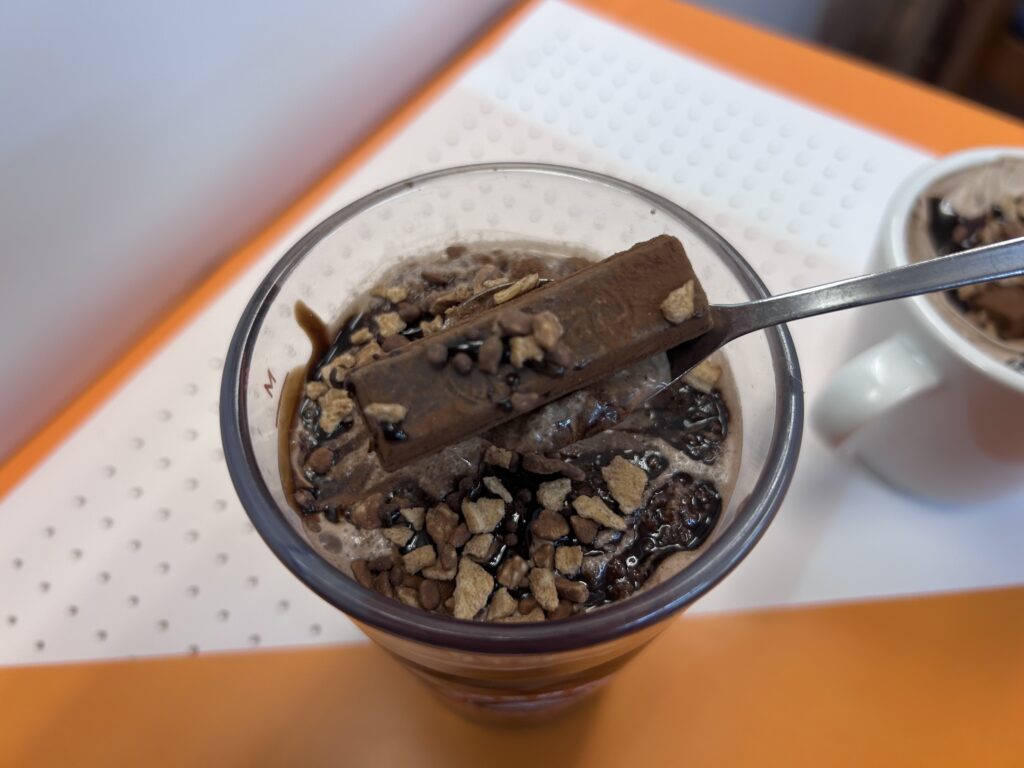 濃厚チョコスムージーに、フレーク状の「キットカット」がたっぷり。🍫🤎