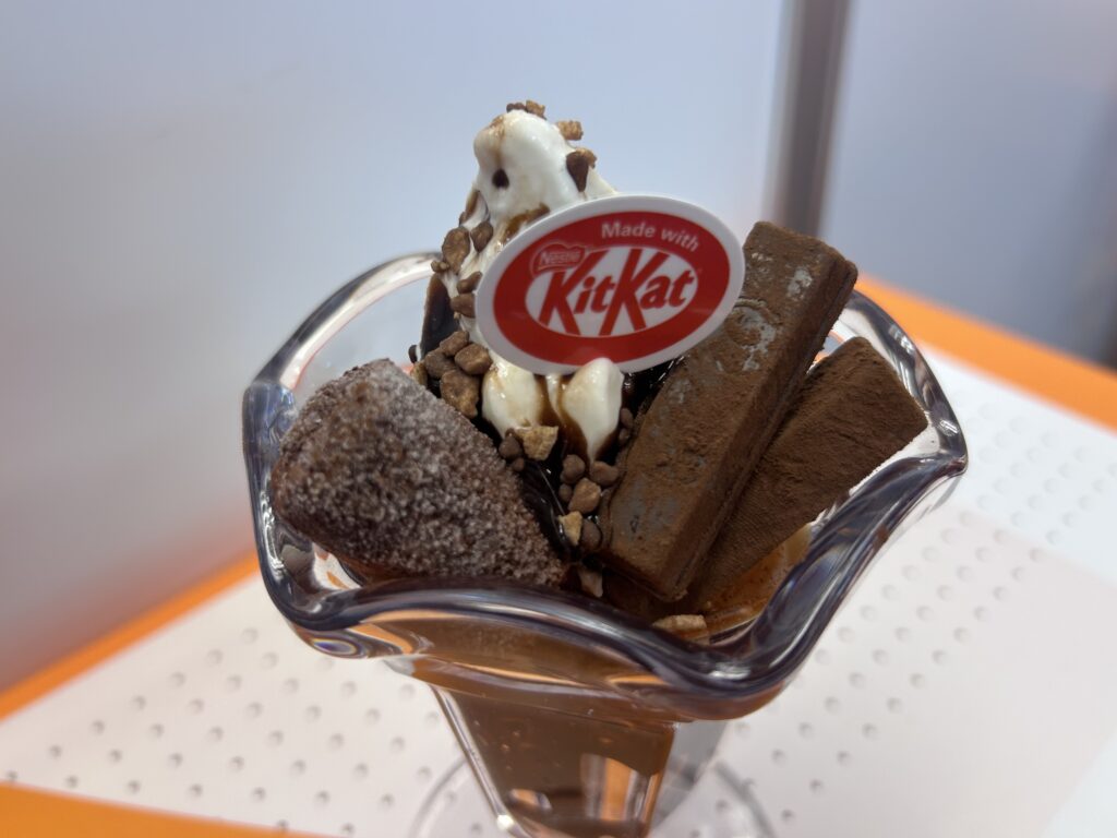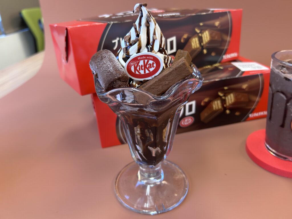 プチサイズの「キットカット」をまるごと2本トッピングした、チョコづくしの贅沢パフェ。🍨✨