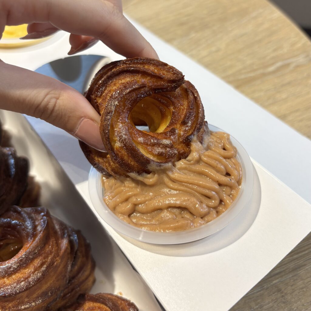 ふわっと香る栗の風味と、焼きたてのシュークルーラーの香ばしさが相性抜群なんです✨