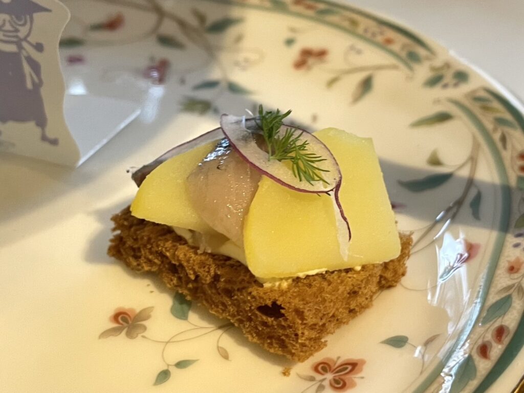 ライ麦パンとマリネしたニシンを使った「ニシンのスモーブロ」🐟。