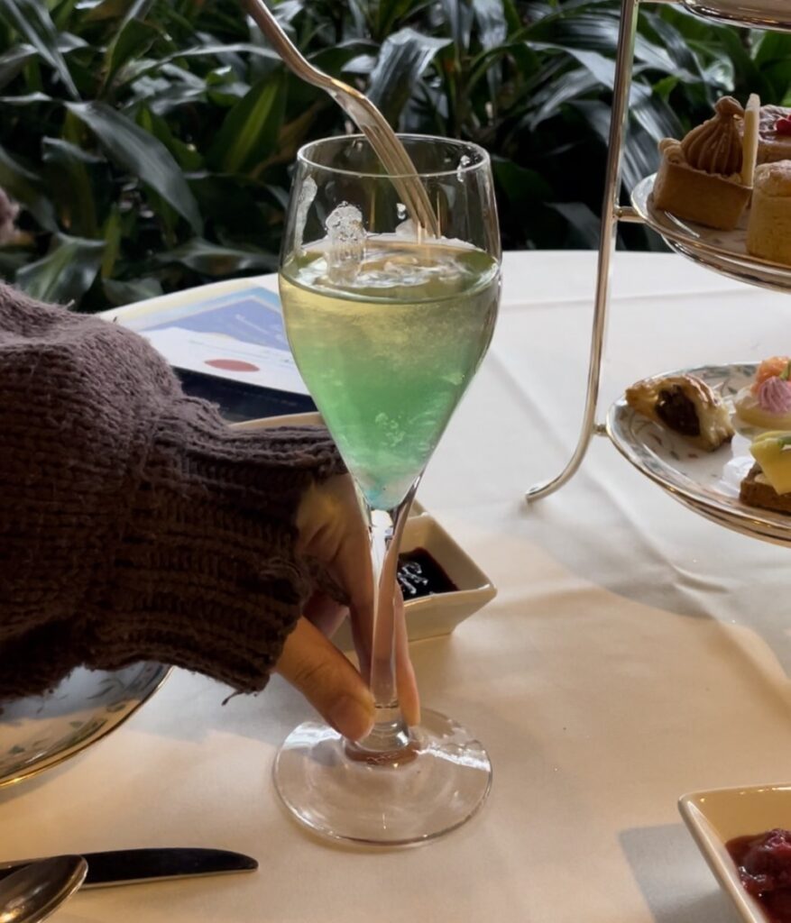まず出てきたのは、雪とオーロラをイメージしたウェルカムドリンク❄️♡