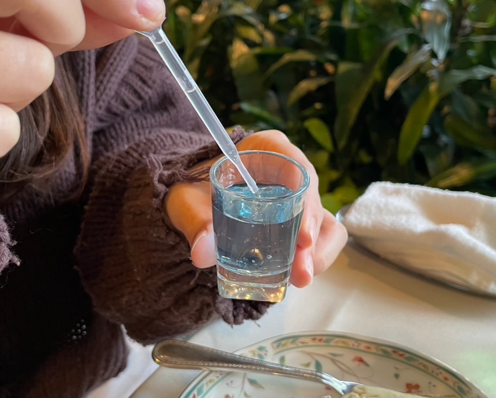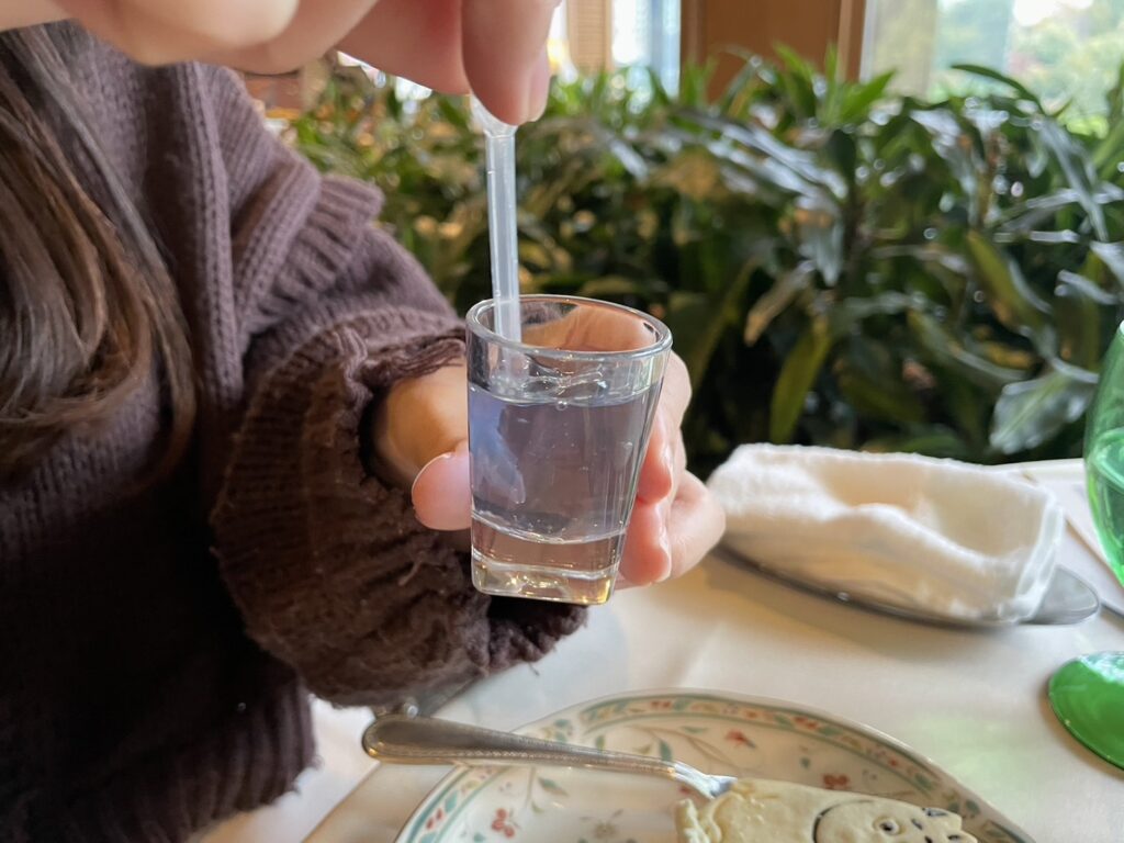 スポイトの中のレモンエキスを注入すると、まるでオーロラのように色に変化が…!?