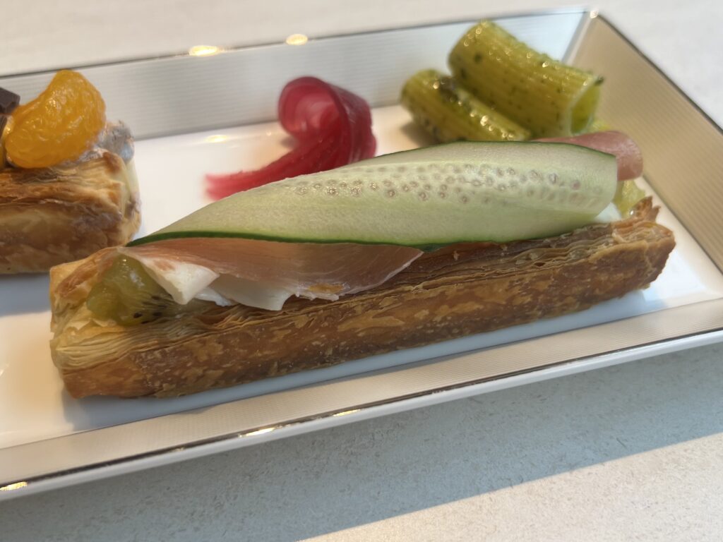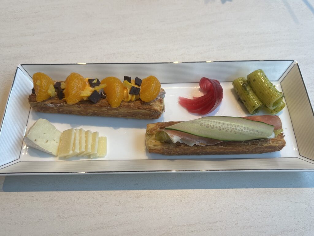 スティック状にしたクロワッサンにフルーツやクリームを合わせた「シトラス&ショコラ」と「キウイ&生ハム&モッツァレラチーズ」が1プレートに✨。