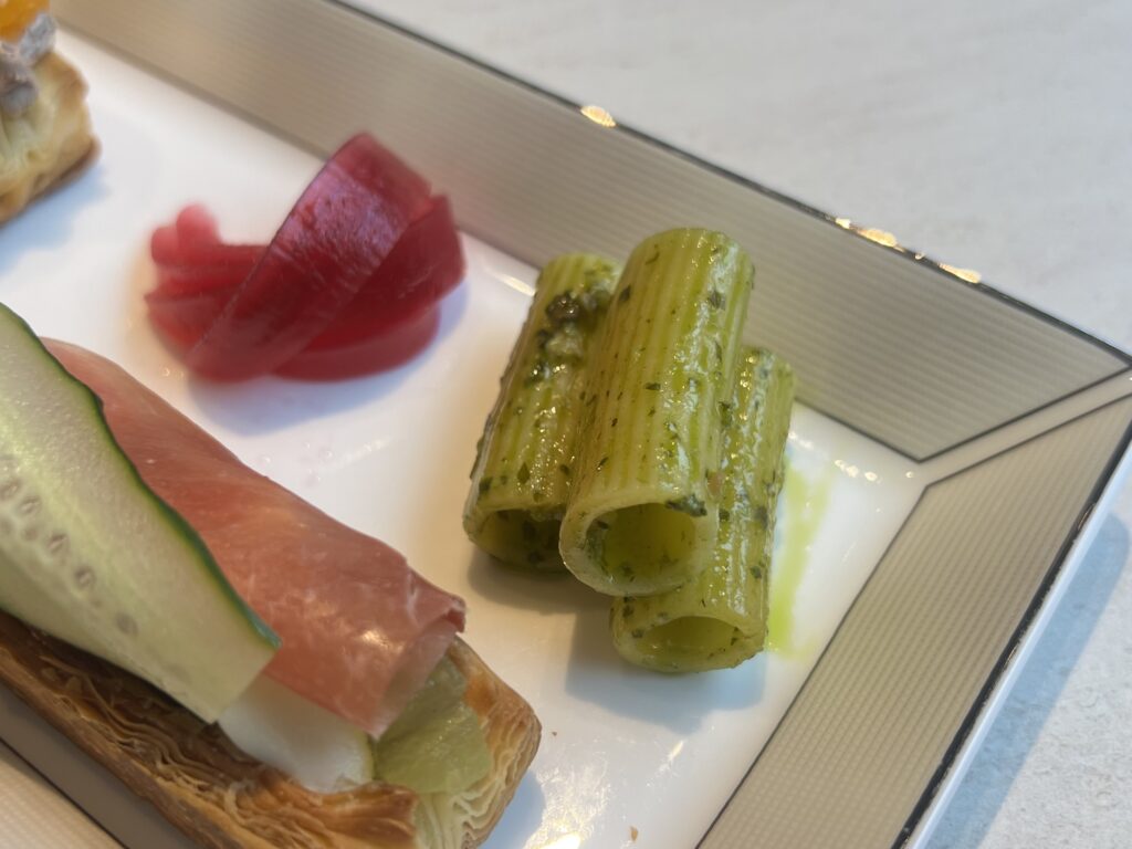 サイドにはチーズの盛り合わせ、リガトーニのジェノベーゼ、レッドオニオンのピクルスも🎶!