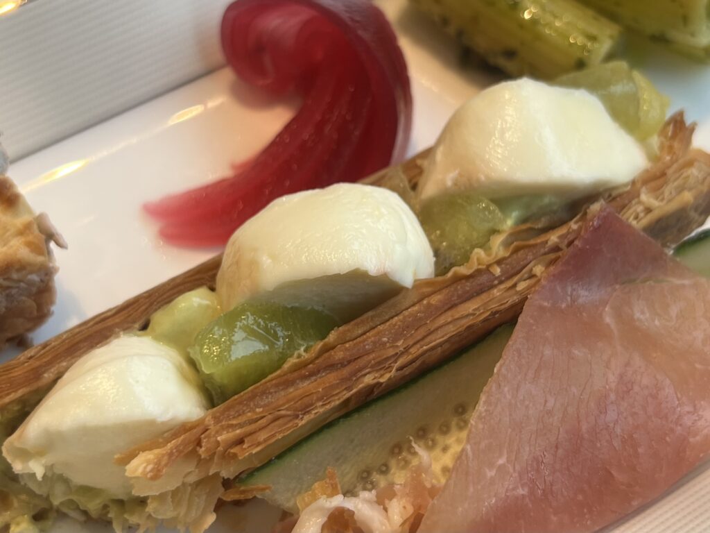キウイ&生ハム&モッツァレラチーズ」は生ハムの程よい塩味、モッツァレラチーズのミルク感、キウイの甘酸っぱさがマッチした1品🥐♡