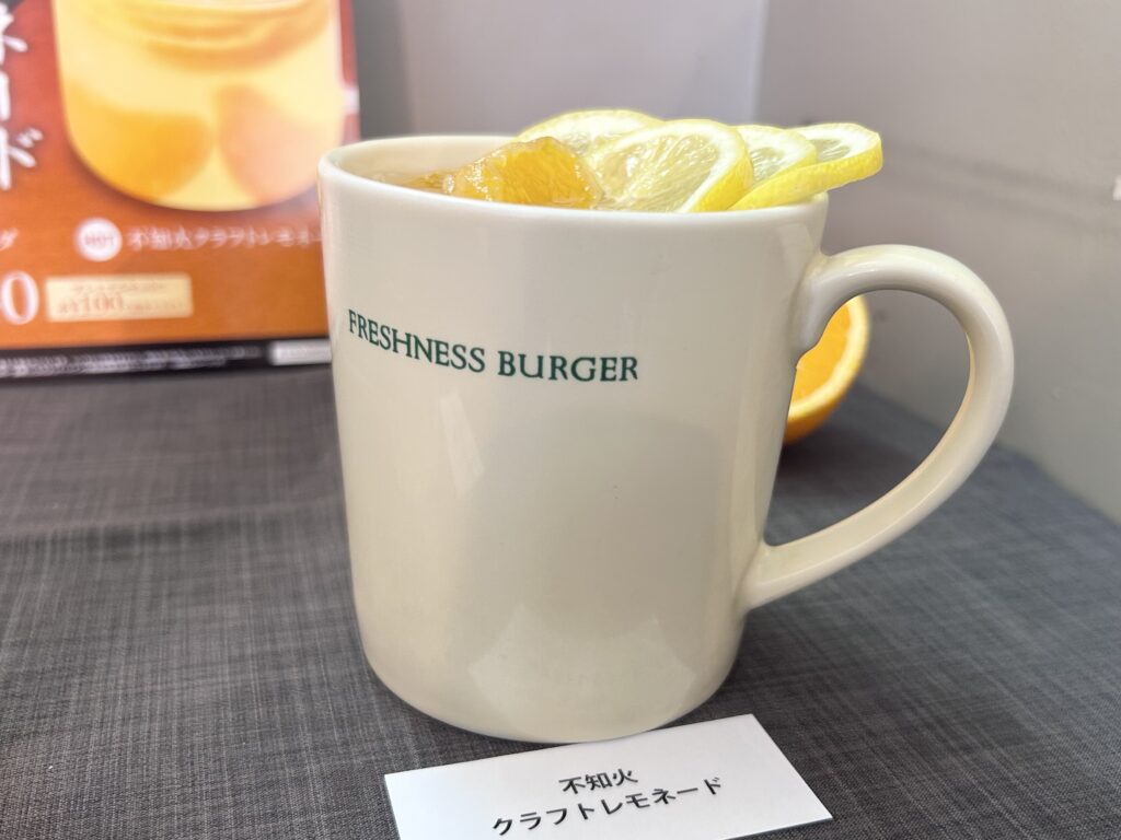 フレッシュネスバーガーでは、この不知火を店内でじっくりハチミツに漬け込み、レモンと合わせてクラフトレモネードとして提供しています!