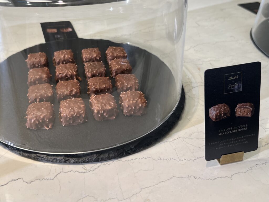キャラメリゼしたココナッツ片が入っていて、高級感たっぷりな「ミルクココナッツ プラリネ」