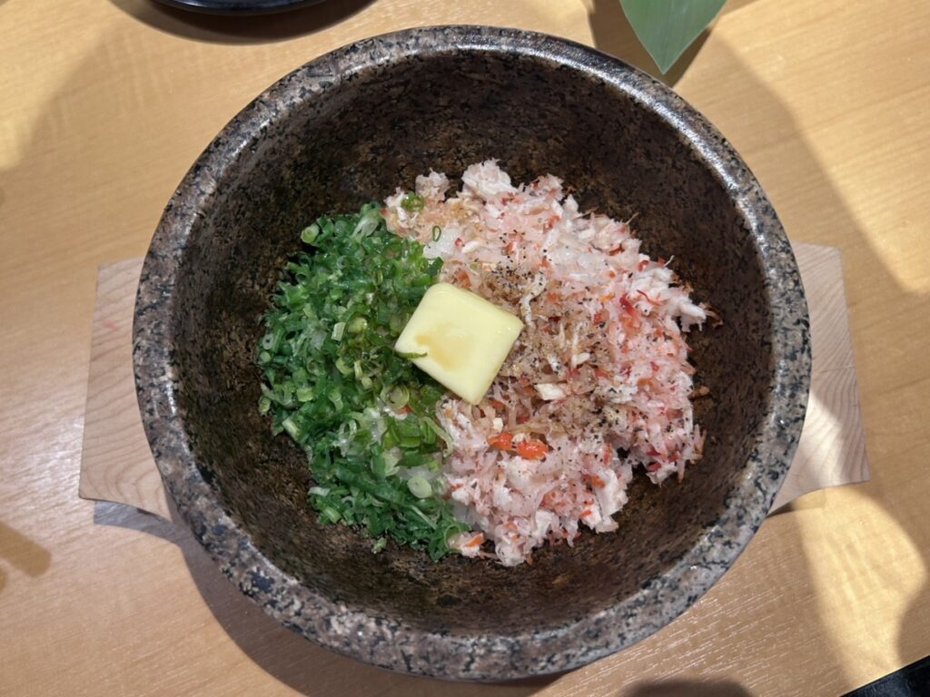 たっぷりの紅ずわいが乗ったご飯を、熱々の石鍋で食べることができちゃうんです🦀。